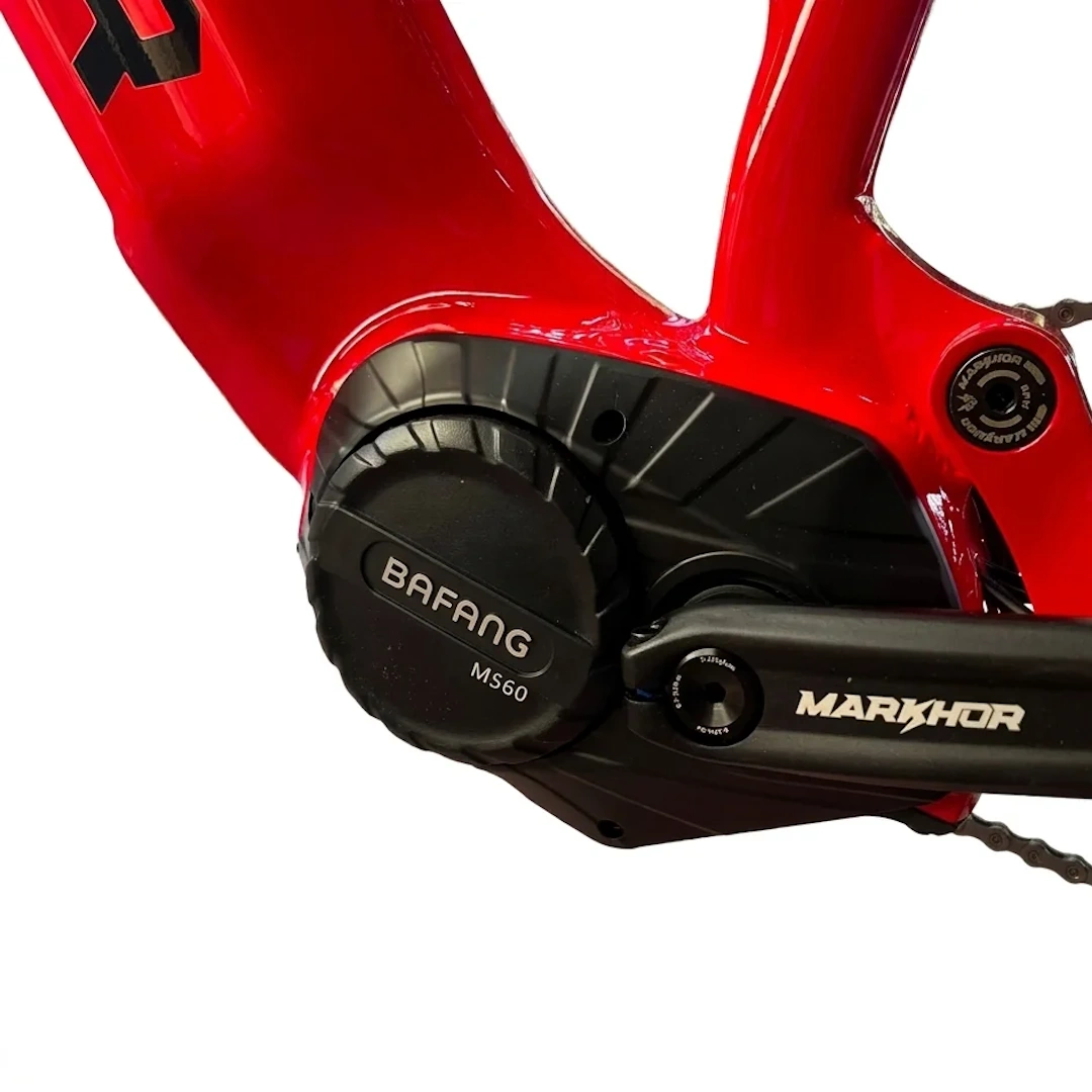 - Poder Dominante (Motor Bafang M560): Equipado con el motor central Bafang M560 de 750W (1450w peak – 48V), que entrega un torque descomunal de 150 Nm. Es la fuerza necesaria para superar cualquier ascenso técnico con una naturalidad asombrosa. Sensor de torque (par) y cadencia integrados, protección IPX6 (agua)