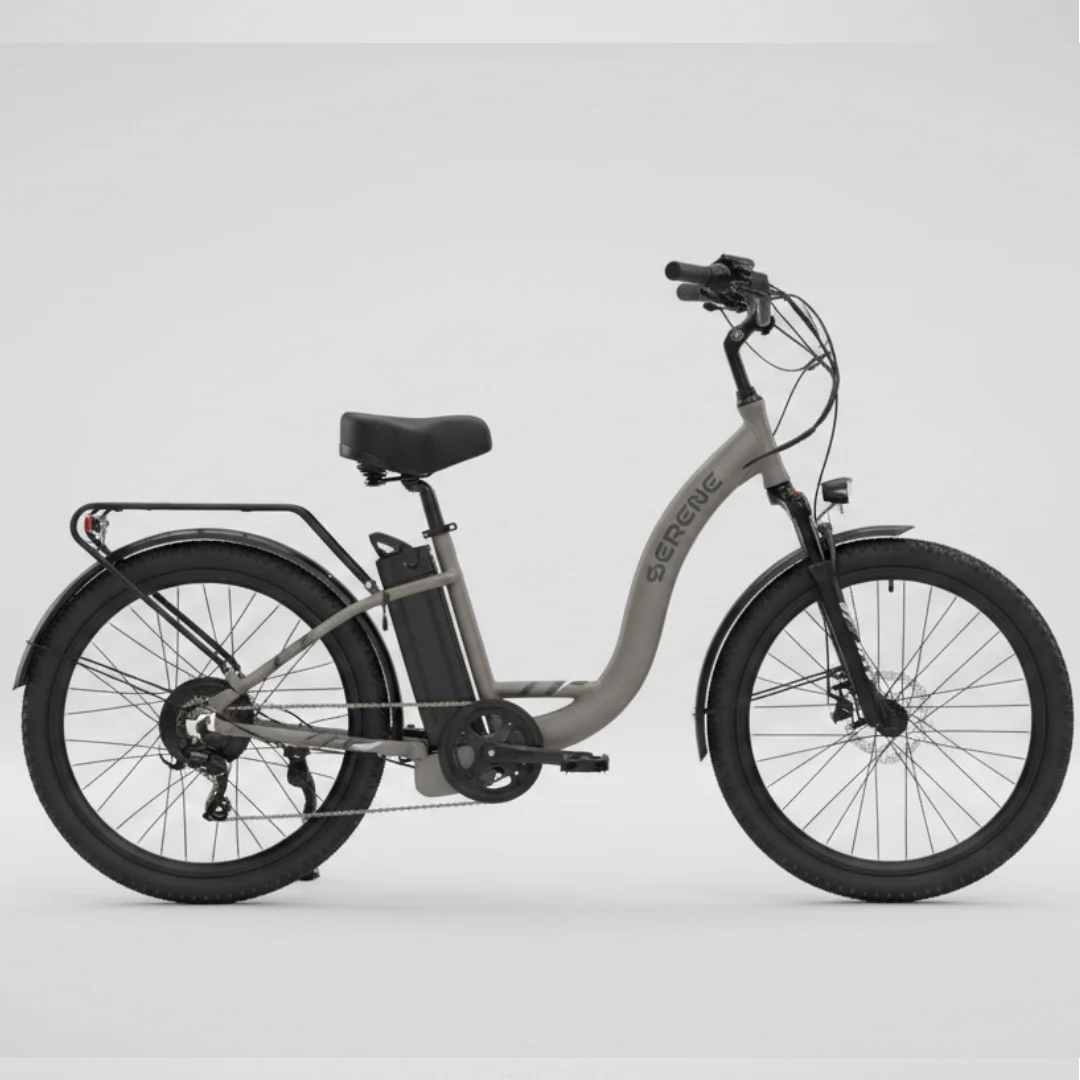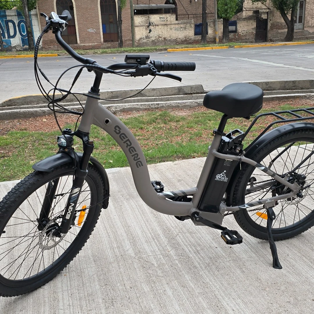 La SERENE es una E-bike Urbana Rodado 26 diseñada para que el trayecto al trabajo, a la facultad o el paseo del finde sea un placer absoluto. Olvidate de sentir los pozos y de llegar cansado: gracias a su asiento extra acolchonado con resortes, sus cubiertas anchas y su geometría ergonómica, vas a sentir que vas flotando por la calle. Es la combinación definitiva entre un andar súper versátil, la potencia justa para trepar cualquier desnivel urbano y el máximo confort para moverte todo el día sin transpirar una sola gota.